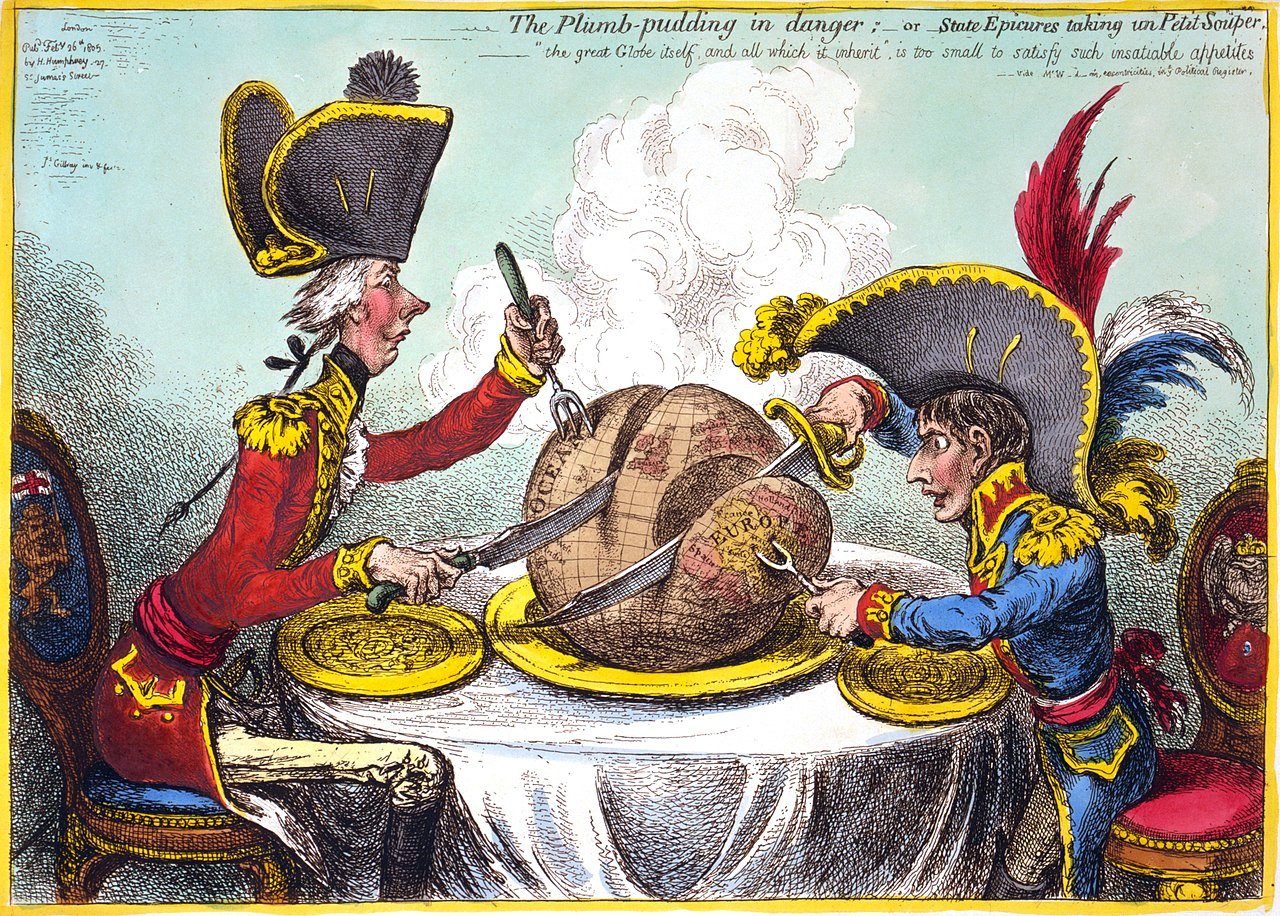 Les deux grands prédateurs que sont Donald Trump et Vladimir Poutine vont se rencontrer en Alaska sur l’Ukraine, à la manière dont un caricaturiste britannique de 1805 imaginait William Pitt (Premier ministre anglais) et Napoléon Ier se partageant le monde. Plus immédiatement, les USA et la Russie entendent passer par-dessus les Ukrainiens… et l’Europe. Et si cette dernière se réveillait ?